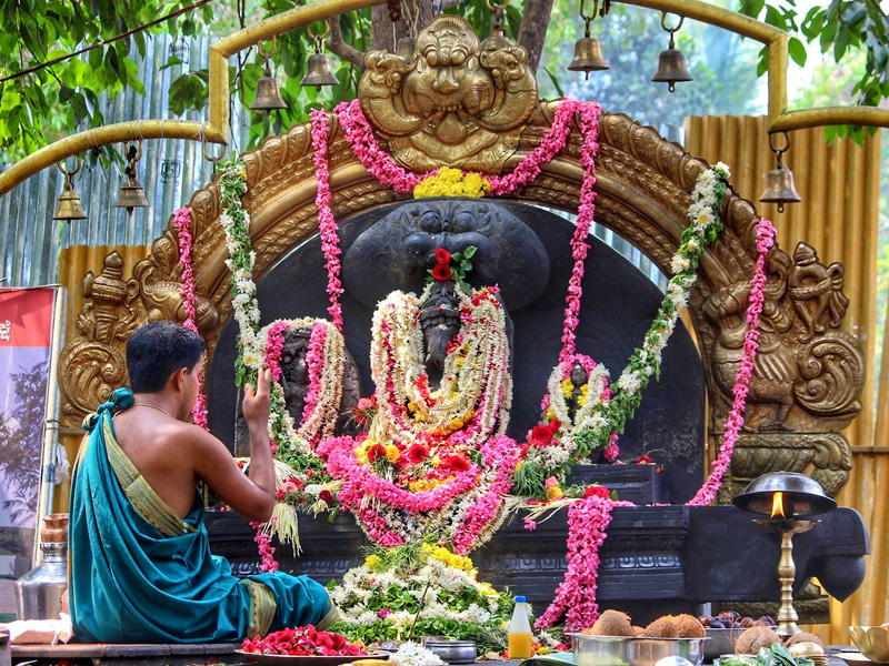 Origin of Doddadalavatta Lakshmi Narasimha Temple Dala Maharishi, a great devotee of Lord Vishnu performed tapasya here under a banyan tree and invoked the blessings of Lord Narayana. Pleased by his austerities, Lord Narayana gave him darshan in form of Narasimha and blessed the sage with a boon. Dala Maharishi requested the Lord to be present in this kshetra and bless devotees in the future. The Lord then manifested Himself in the form of Lakshmi Narasimha, a shaligrama shila. Later in the year 1982, another Deity of Lord Lakshmi Narasimha was established next to the Swayambhu Shaligrama Shila who also continues to give darshan to devotees.